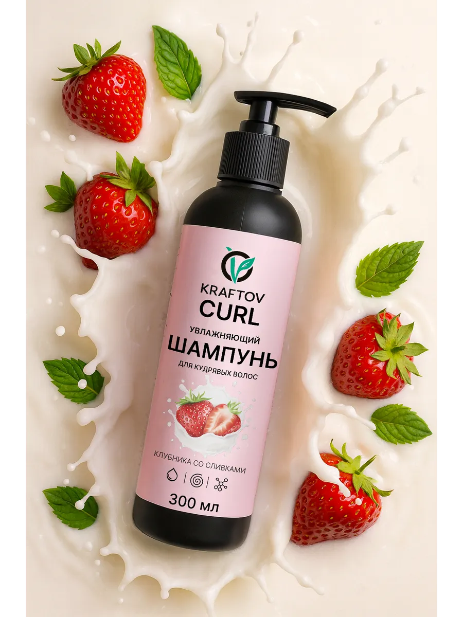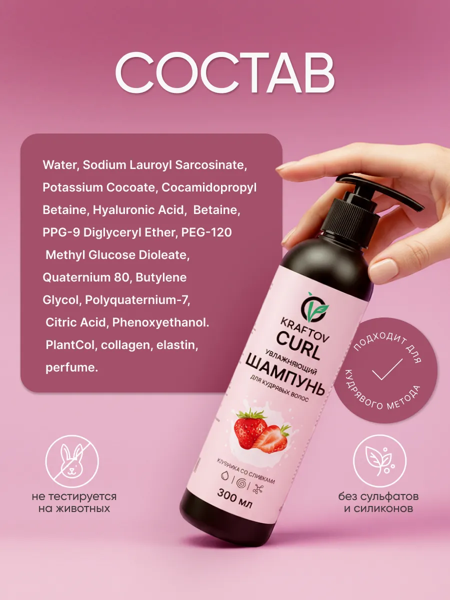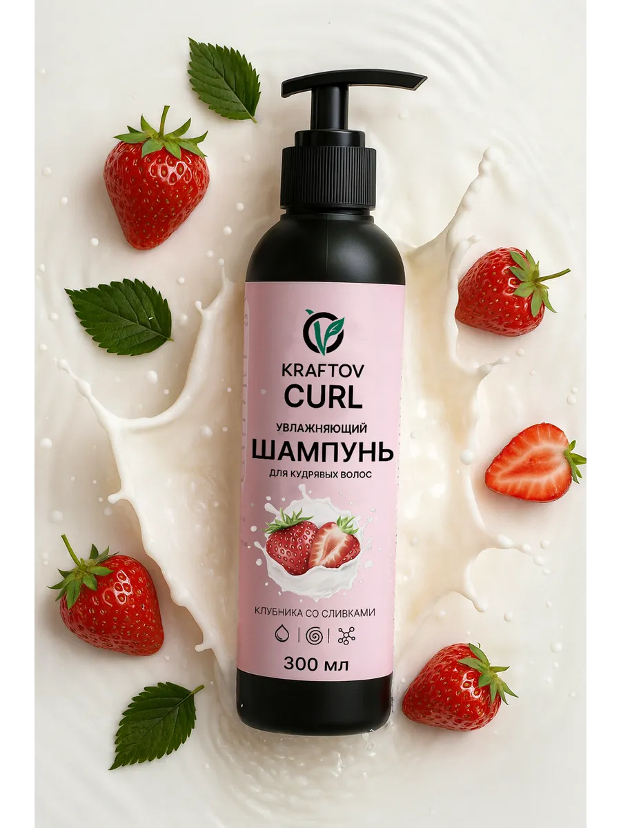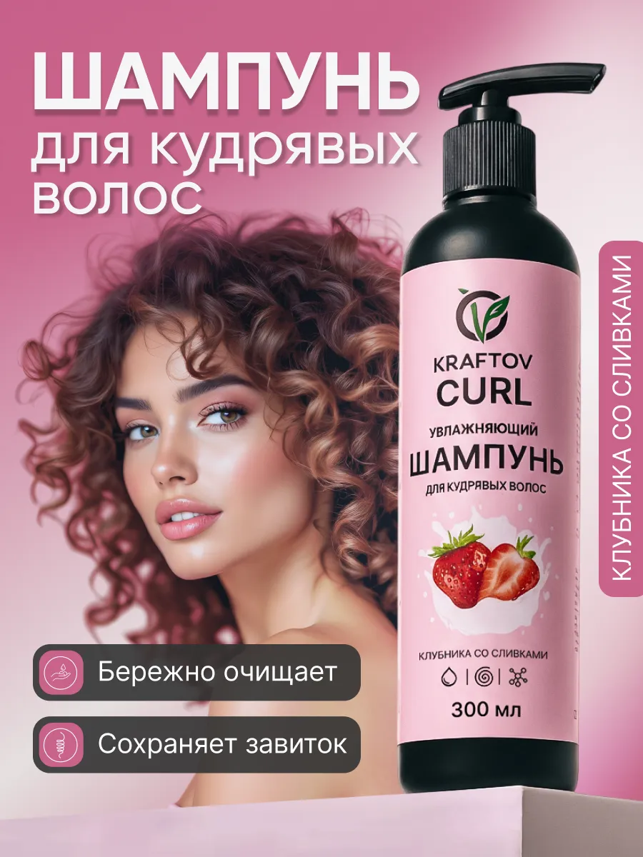 Полностью без сульфатов, силиконов и сухих спиртов, шампунь KRAFTOV - разработан с любовью к кудрявым волосам, создан по всем канонам кудрявого метода, а также нацелен на результат.